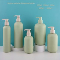 Trong Kho 200Ml 300Ml 500Ml HDPE Nhựa Pha Chế Chai Màu Xanh Lá Cây Sang Trọng Hình Dạng Xi Lanh Với Bơm Phun Cho Dầu Gội Đầu Gel Tắm