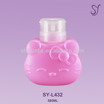 380มิลลิลิตรสีชมพู Hello Kitty สไตล์ PE ยาทาเล็บ Remover ขวดที่มีปั๊ม L432